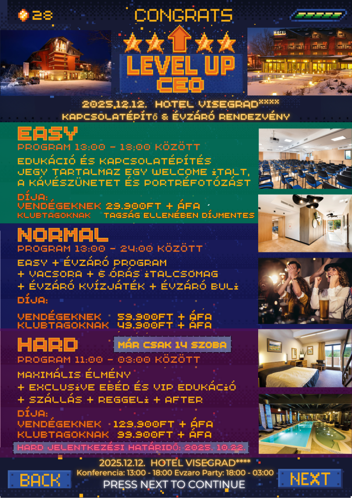 🎮 LEVEL UP CEO – Kapcsolatépítő & Évzáró Rendezvény